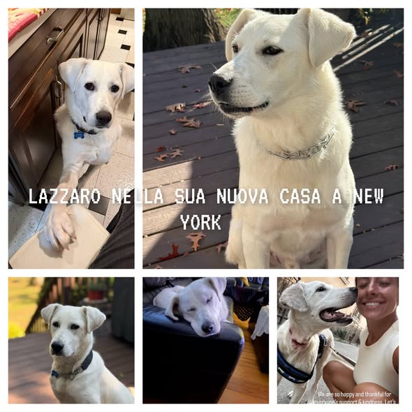 A fine agosto la famiglia è rientrata negli Stati Uniti, ma Lazzaro non è mai uscito dai loro pensieri. Sono partite le procedure per l’adozione e per il trasferimento oltreoceano. Qualche giorno fa ho ricevuto le foto di Lazzaro nella sua nuova casa, a New York: sereno, in salute, accolto come un membro della famiglia. E non solo: Roberto e Rachele sono tornati appositamente per prenderlo e portarlo con loro negli Stati Uniti. Un gesto che dice tutto.