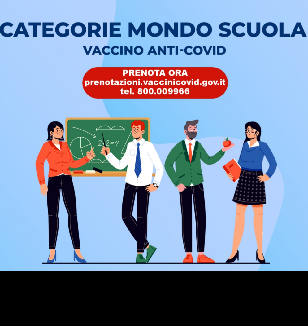 Sono aperte le prenotazioni per la vaccinazione del personale delle scuole statali (per ora limitatamente a persone under 55 il cui nominativo è stato comunicato dal Ministero).