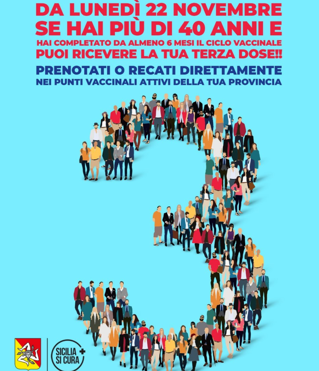 Da lunedì prossimo 22 novembre, parte in Sicilia la somministrazione della terza dose di vaccino anti-Covid al target 40-59 anni. Come per le altre categorie, per ricevere la dose “booster” dovranno essere trascorsi almeno sei mesi dal completamento del ciclo primario di vaccinazione.