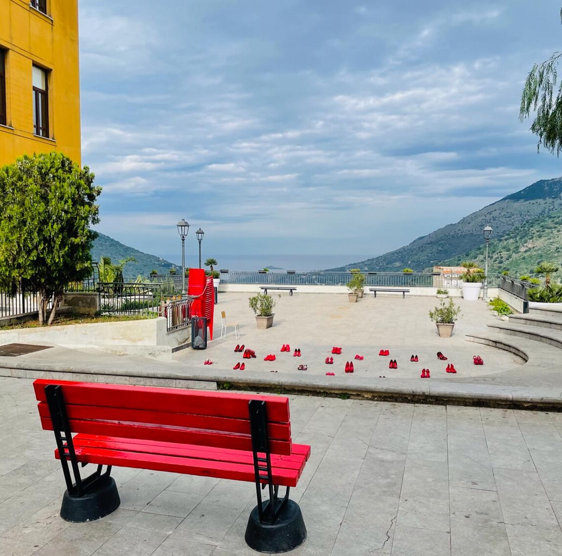La cerimonia è stata caratterizzata anche dall’esposizione delle scarpette rosse, presso il Belvedere, ma anche dall'installazione di due panchine rosse, ed è su una di queste che si è seduta la Presidente del Consiglio Silvia G. Di Maggio per rilanciare il seguente messaggio: "Mi sono seduta su una panchina rossa per dichiarare la mia partecipazione alla giornata mondiale contro la violenza sulle donne. Non è solo alla morte che dovete pensare quando guarderete questa panchina rossa. Dovete pensare alla morte che si cela dietro alle parole violenti, alle mortificazioni, agli sguardi, agli ammutinamenti, ai veti senza motivo. Alle umiliazioni, alle inaccettabili disparità di trattamento. È un simbolo contro ogni violenza sulle donne e quindi sulla necessità di diffondere i valori dell’uguaglianza e della parità fra i sessi che nasce dal reciproco rispetto.