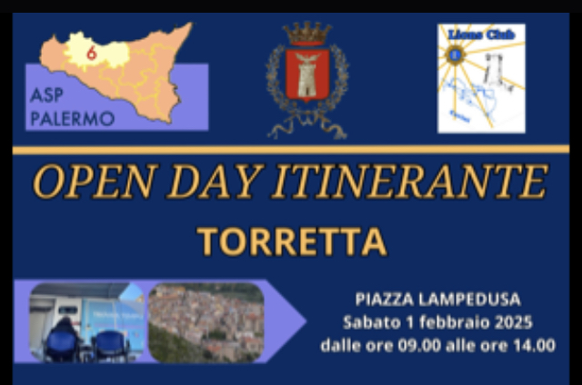 Com'è ormai consuetudine, l’Open day itinerante dell’Asp di Palermo domani sarà da noi. Come Amministrazione, siamo impegnati nel promuovere una cultura della prevenzione attraverso queste iniziative concrete, gli operatori dell’Asp di Palermo effettueranno: screening visivo e screening logopedico riservato ai bambini tra 3 e 8 anni;