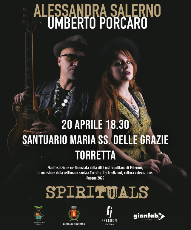 Nel giorno di Pasqua, vi aspettiamo in Chiesa Madre per un incontro di anime e suoni: 'Spirituals'. La musica diventa preghiera, le voci di Alessandra Salerno e Umberto Porcaro ci guideranno in un viaggio di luce e spiritualità.