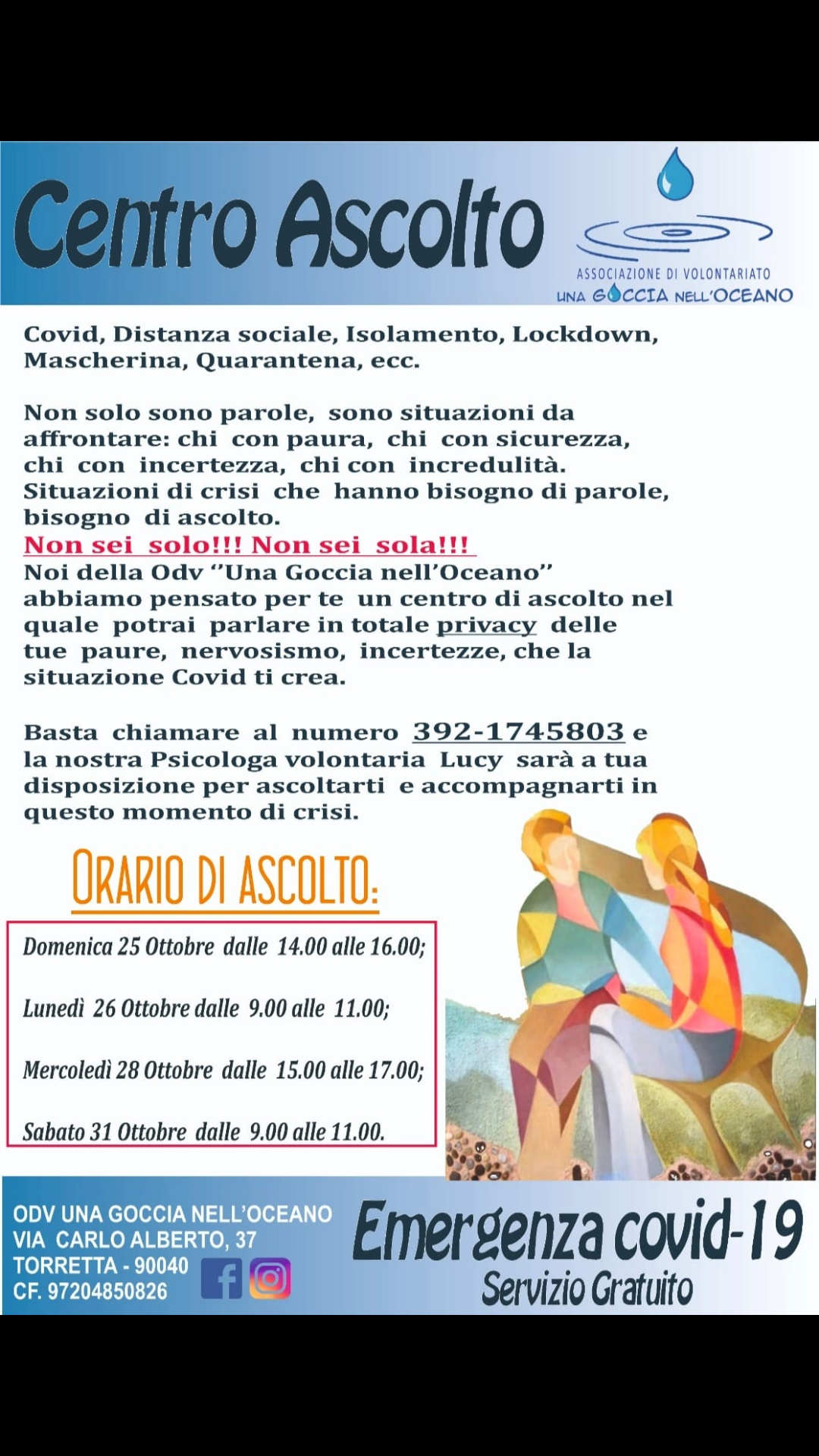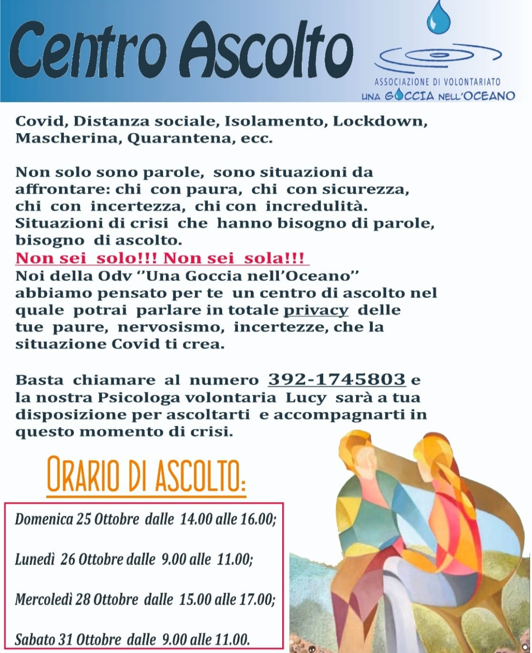 Centro di ascolto istituito dall'Associazione una Goccia nell'oceano.