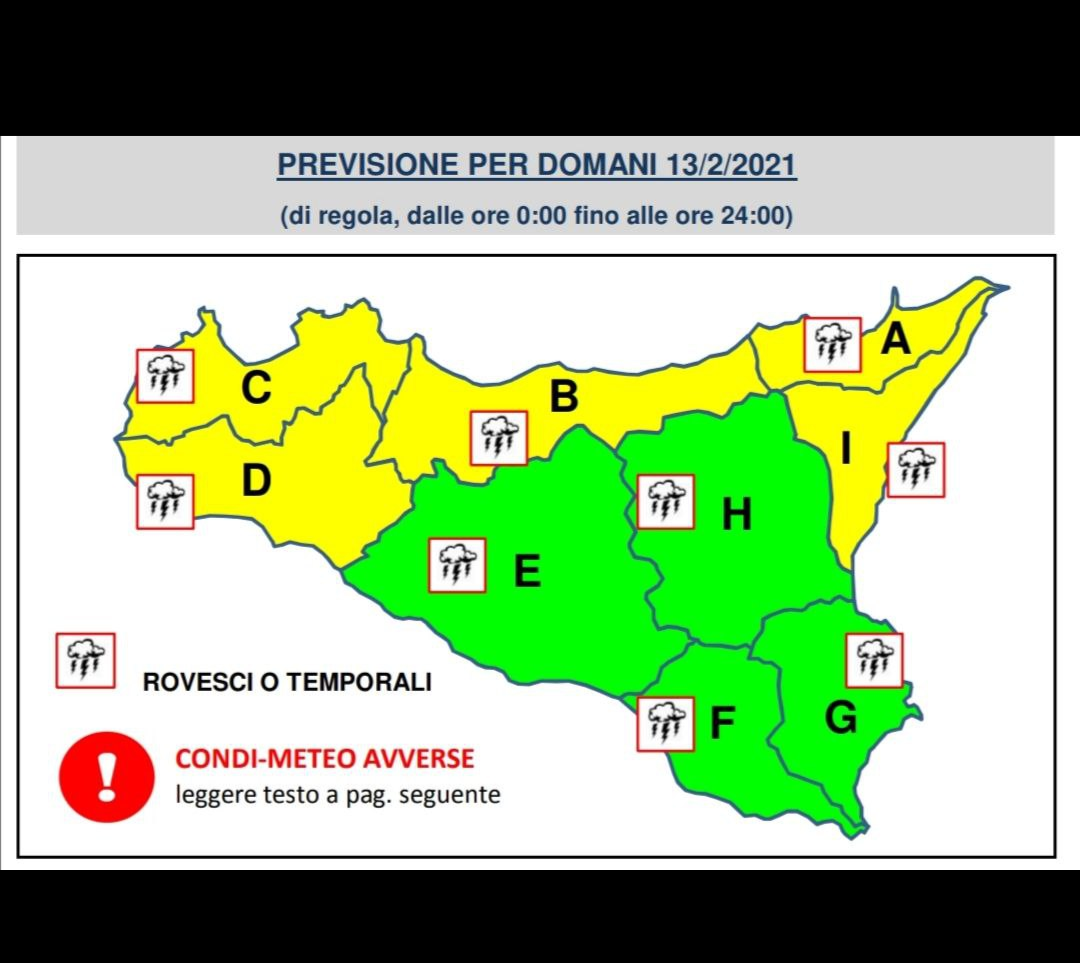 La Protezione Civile Regionale ha emesso un'allerta meteo con livello di rischio GIALLO per oggi 13 febbraio. Vengono segnalate CONDIZIONI METEO AVVERSE, con temperature che nelle ore notturne arriveranno a 5 gradi°