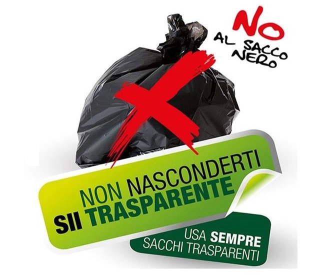 1. è fatto divieto di depositare e esporre qualsiasi tipo di rifiuto in sacchi neri o comunque non trasparenti, tali da impedire alla ditta incaricata della raccolta la verifica del corretto conferimento.