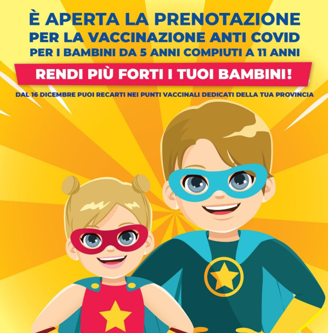 COVID-19. VIA ALLE PRENOTAZIONI PER VACCINI PER BAMBINI DI ETA' FRA 5 E 11 ANNI