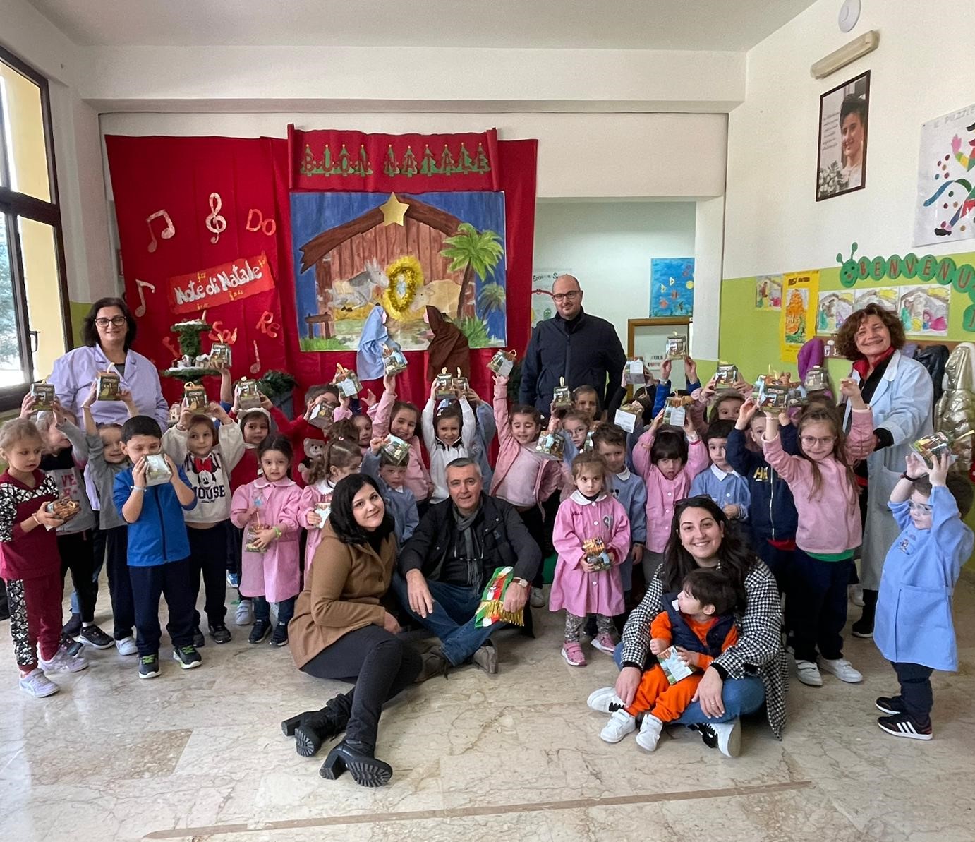 Dopo lo scambio degli auguri natalizi, i bambini hanno ricevuto in dono un piccolo panettone.